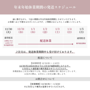 平素よりaile lash をご利用いただき、誠にありがとうございます。 誠に勝手ながら、下記の期間を年末年始休業とさせていただきます。 あわせて、期間中の商品発送スケジュールについてもご案内申し上げます。 〇商品発送・お問い合わせ年末年始休業期間 2025年12月30日(火)〜2026年1月4日(日) ※2026年1月5日(月)より通常営業いたします。 〇商品発送スケジュール 2025年12月30日10:00までのご注文が最終出荷となります。 ※入金確認ができた時点での出荷となります。 2026年1月5日より通常通り順次発送いたします。![]()
